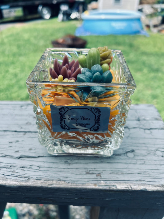 Succulent Candle Zesty Vibe (Lime, Lemon, Orange) cotton wick beeswax candles